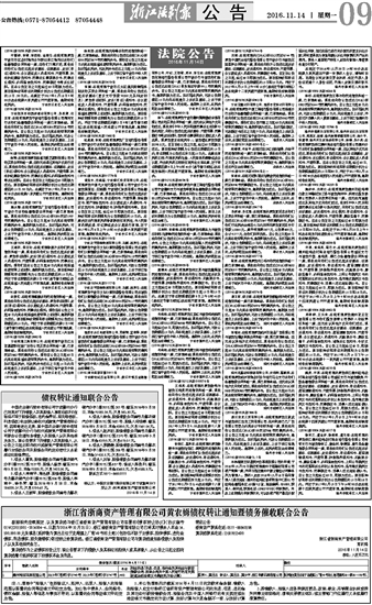 浙江省浙商资产管理有限公司黄农姆债权转让通知暨债务催收联合公告