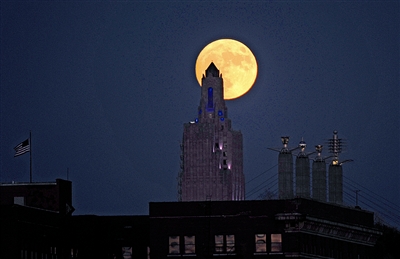 11月13日,一轮“超级月亮”升起在美国密苏里州堪萨斯城的夜空。