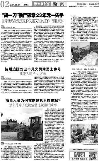 杭州追授刘卫丰见义勇为勇士称号