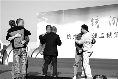 “央求您啊下辈子,还做我的父亲……”一曲《父亲》终了,三位年迈的老人在民警的引导下走上舞台,三名服刑人员跪在老人面前,说出了心里话:“爸爸,我错了!”老人紧紧抱着儿子,用颤抖的声音说:“孩子,要安心改造,争取早日回家。家里不能没有你,没有你就没有家啊!”此情此景,让台下的许多服刑人员都流下了悔恨的泪水……