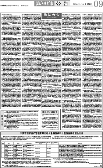 宁波市瑞军资产管理有限公司与金翀债权转让暨债务催收联合公告