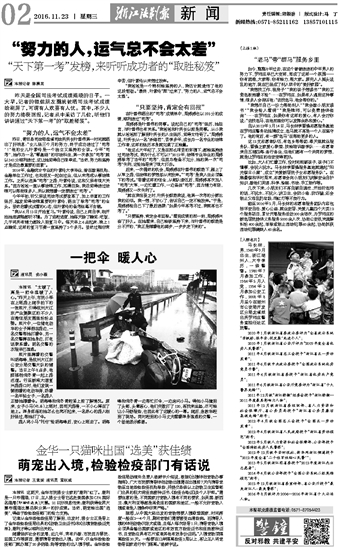记者从金华检验检疫局了解到,出发时,骆女士正是带上了金华检验检疫局出具的《动物卫生证书》和《出境货物换证凭单》,康利才得以顺利出关的。