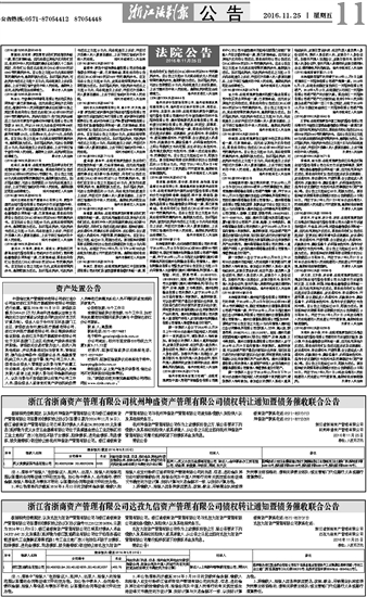 第一次债权人会议于2016年12月29日上午9时00分在温州市瓯海区人民法院第十一审判庭召开,请各债权人准时参加。参加会议的债权人系法人或其他组织的,应提交营业执照、法定代表人或负责人身份证明书,债权人系自然人的,应提交个人身份证明。如委托代理人出席会议,应提交委托书、委托代理人的身份证件,委托代理人是律师的应提交律师执业证、律师事务所的指派函。温州市瓯海区人民法院