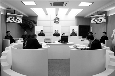 本报讯 “合”代表着“人和家合”。11月25日,温州瓯海法院审理了一起涉归国华侨离婚诉讼时,首次启用了“合”字形家事审判庭。和以往严肃的法庭格局不同,家事审判庭以“合”字形布局,“人”字为观察区,“一”字为审判台,审判区由中心向外呈半圆形辐射状。据了解,瓯海法院正在为该审判庭设计的外观设计申请专利。
