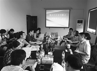 11月15日,衢州市商务局法规处(公平贸易处)工作人员来到巨化集团等相关企业,将最近境外相关产品的外贸预警信息告知企业。像这样每月走访贸易企业是商务局工作人员每月的必修课。
