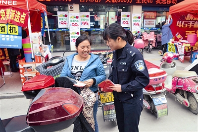 温岭市横峰街道是浙江著名鞋乡,流动人口众多,为此,横峰派出所民警专门走近外来务工人员,为他们送上防范盗抢骗的宣传套餐。该所民警来到几个流动人口集中的居住点,分发防范侵财案件宣传资料,并在现场详细讲解防骗防盗常识,受到了务工人员的欢迎。