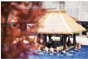 水上乐园位于酒店温泉中心,由原有的儿童戏水区、康体中心等三个区域结合改造而成,总面积近7000平方米,整体建造沿袭了酒店原有的巴厘岛建筑风格。