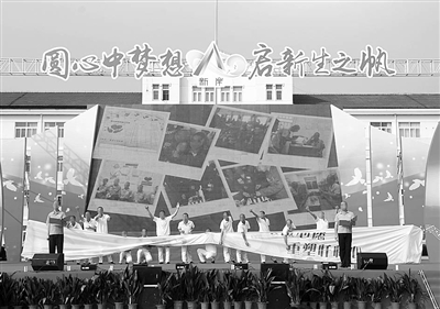 本报讯 “我想和你走下去,从未想过要放弃!”近日,省南湖监狱“圆心中梦想 启新生之帆”第二届“新岸文化”文艺汇演在监狱南关押点顺利举办,由服刑人员自编自演的小品《预演》在4名服刑人员的歌唱中结束。