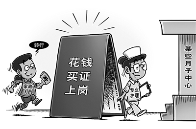 ——家政人员转行,花钱买证就上岗。记者在采访中发现,不少月子中心都打出“专业医疗团队保障”“先进母婴保健护理”等承诺。记者以产妇家属的身份走访了福州晋安区某月子会所,当记者提出要查看相关护理人员的健康证、上岗资质时,该接待人员并未出示,而是强调“我们都是正规在卫生部门备案过的”。记者提出查看相关备案证明,接待人员才表示“其实没有”,但让记者放心,“我们干的是良心活”。