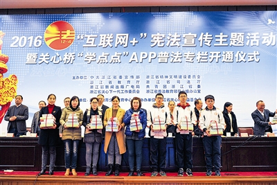 本报讯 优秀的普法资源如何实现共享,自创的普法产品怎么去推广,好的普法创意在哪里找到专业团队合作……12月2日,在全省“互联网+”宪法宣传主题活动现场,随着省人大常委会副主任、省普法教育领导小组副组长厉志海轻点屏幕,浙江省“互联网+”法治文创联盟合作平台即时上线,今后,这些问题都将在这里得到解决。