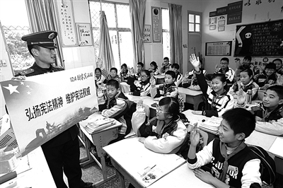 12月2日,温州公安边防支队多名兼职法制副校长走进辖区校园,通过主题授课、知识竞赛、法条释义等方式,为学生们普及宪法知识。