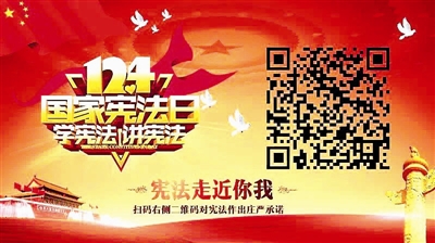 12月4日是第3个国家宪法日。增强全社会尊法学法守法用法意识,是共识亦是责任,普法任重道远,让我们从每一天每一点做起。