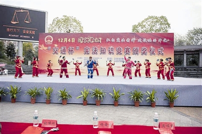 11月29日,杭州市上城区山南基金小镇里好不热闹。作为“宪法宣讲浙江行”活动的重要内容之一,杭州市上城区“12·4”国家宪法日主题宣传暨浙江电视台“流动大舞台”法治文艺演出正在火热上演。