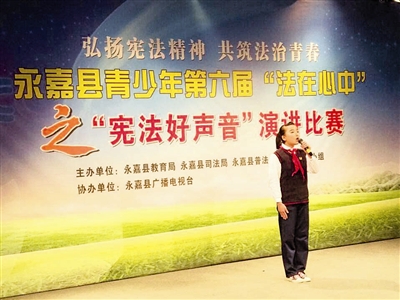 | 永嘉县举办第六届青少年“法在心中”之“宪法好声音”演讲比赛 |