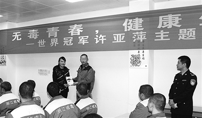 许亚萍还向戒毒人员送上了“精神食粮”──自费购置的一百多本爱心书籍。湖州籍戒毒人员李某接过书籍后说:“感谢家乡的世界冠军来所帮扶,我们一定要坚持梦想,争取戒毒成功。”