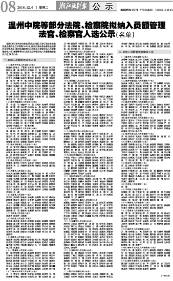 温州中院等部分法院、检察院拟纳入员额管理 法官、检察官人选公示(名单)