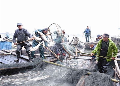 昨日,德清县新安镇荷叶蒲漾开展今年的第一次围捕,近2万斤鲜鱼将运往杭州、上海等地。近年来,当地积极推进“五水共治”,荷叶蒲漾通过综合治理,水质得到明显改善,出产的水产品格外受到青睐。