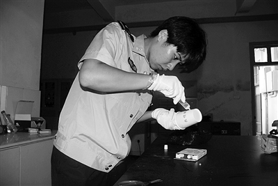 今年9月的一天凌晨,鳌江某宾馆发生了一起非正常死亡事件,宾馆老板称一住宿女子与男友发生争吵,从宾馆4楼掉下后身亡。接案后,林司旗火速赶往现场。而不懂警方工作程序的宾馆老板此时已将女子掉落时砸坏的花瓶碎片等物清扫干净,现场遭到了破坏。林司旗默默寻找线索。经过近1个小时的查找,林司旗未发现任何打斗的痕迹,这让她一夜无眠。第二天天刚亮,林司旗又匆匆赶往案发现场,进行反复勘查,终于她在4楼阳台的墙面上发现了滑擦痕迹,并在外墙瓷砖上提取到血液。经鉴定,血液是死去的女子所留。