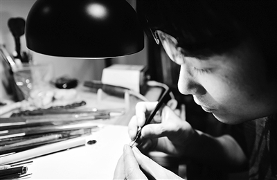 12月6日,林建军使用“纹雕”技艺雕刻重量为一克拉的沉香。