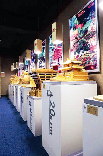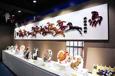 新开馆的“七彩百工”成果展厅分木艺、纸艺、陶艺、3D设计、雕艺、皮艺和书艺七个馆,记载着服刑人员学艺过程和创作经历,并展示精品成果。木艺馆用木雕作品展示了监狱第10届至第26届菊文化艺术节的优秀实景微缩雕刻;纸艺馆展示的作品是服刑人员用衍纸作品、意大利莱切纸艺、瓦楞纸工艺等技术创作;陶艺馆展示的是监狱联合“乐漫土”非遗品牌,将外国籍被判刑人通过国家汉语等级一级考试、跨洋亲情电话、故乡风情等场景用泥塑固定;3D馆以围棋文化为主元素,讲述了围棋促改造的故事。