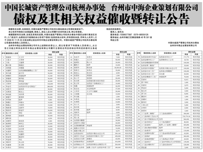 浙江省浙商资产管理有限公司与温州开平经贸有限公司债权转让通知暨债务催收联合公告
