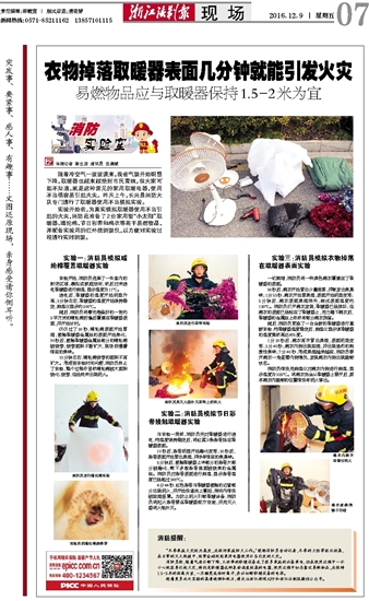 衣物掉落取暖器表面几分钟就能引发火灾