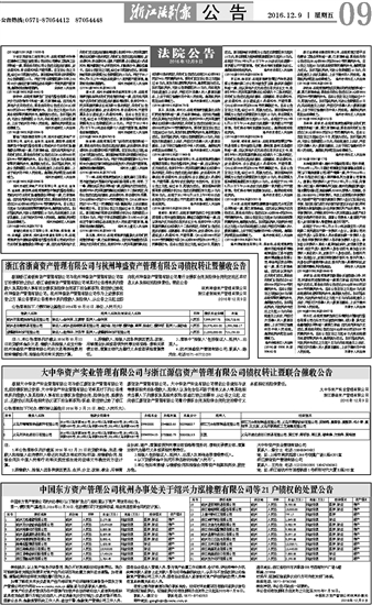 大中华资产实业管理有限公司与浙江源信资产管理有限公司债权转让暨联合催收公告