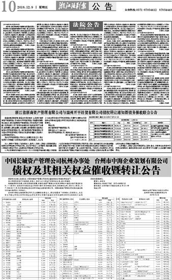 浙江省浙商资产管理有限公司与温州开平经贸有限公司债权转让通知暨债务催收联合公告