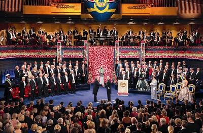 2016年诺贝尔物理学奖、化学奖、生理学或医学奖、文学奖和经济学奖颁奖仪式10日在瑞典首都斯德哥尔摩举行,文学奖得主鲍勃·迪伦缺席颁奖仪式。