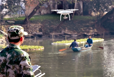 12月7日,湖州德清县洛舍镇杨树湾港的上空出现了一位特殊的“河长”——无人机,它上下左右来回飞行,和保洁船共同行动。该镇最近引入无人机,开启“天眼”模式,从空中航拍河道,实时查看河道污染治理情况和水质变化情况,助力五水共治。