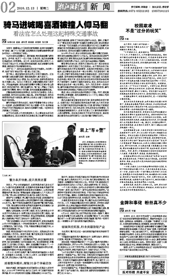 本报讯 骑着高头大马到朋友家喝喜酒,回来时却被摩托车“追尾”,撞了个人仰马翻,这起特殊的交通事故赔偿责任要如何划分,一时间难住了法官。