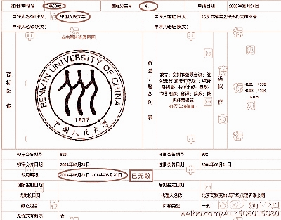 人大校徽商标到期未续展 相似图案被注册