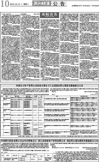 中国东方资产管理公司杭州办事处与王志绍债权转让暨债务催收联合公告