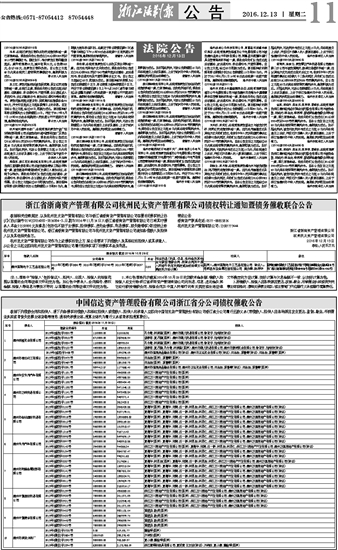 中国信达资产管理股份有限公司浙江省分公司债权催收公告