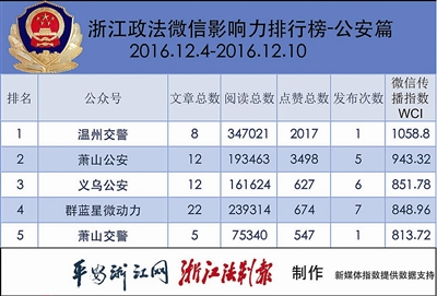 公安榜上,依然是“温州交警”第一,“萧山公安”第二,“义乌公安”第三。