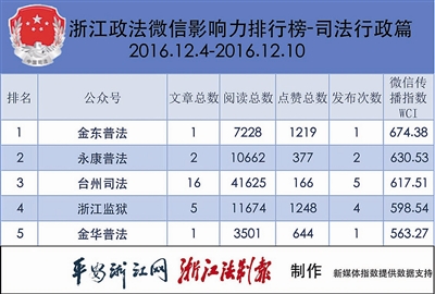 本期司法行政榜,之前排名靠后的“永康普法”夺得第二名,“台州司法”拿下第三名。
