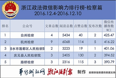 年底了,大伙儿都在冲业绩,政法微信的小编们要想交上一份漂亮的年终考核也得加把劲了,不辜负自己更不辜负读者的关注才好。开榜时间到了,跟小编一起看看本期哪几家微信公众号的努力结成了硕果。