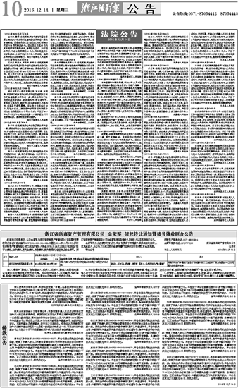 浙江省浙商资产管理有限公司 金荣军 债权转让通知暨债务催收联合公告