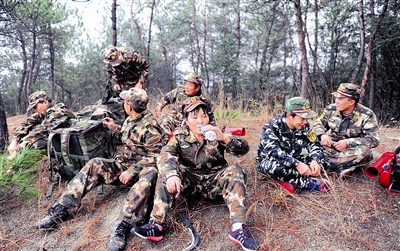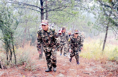 | 楼钟华带队进行负重拉练 |
