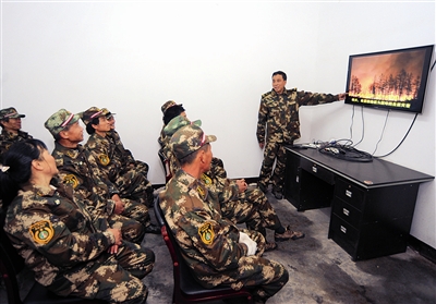 12月13日上午,记者在森林消防队会议室见到了楼钟华,他正在给队员们上安全课,“上坡会加快山火蔓延速度,扑救时应从下方进行,切忌迎着风……”