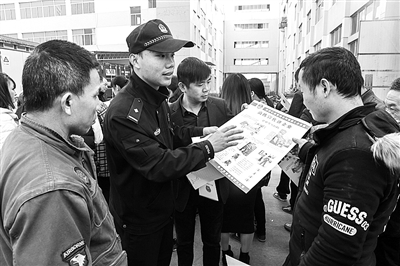 年底将至,台州黄岩警方通过强化监督整改和开展消防培训,全力抓好企业消防安全工作。图为昨天,新前派出所民警在辖区工厂里向工人们宣传消防安全知识,