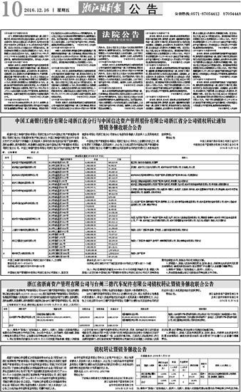 浙江省浙商资产管理有限公司与台州三德汽车配件有限公司债权转让暨债务催收联合公告