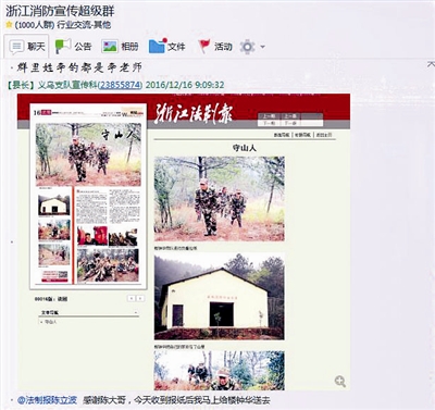 12月16日16时35分许,义乌市洁康管业有限公司发生火灾。你和中队的消防官兵一如往常,紧急赶赴现场救援。就在出发前几分钟,你还将一篇有关义乌专职消防队队员薪酬待遇的稿件发进了我的邮箱,万万没想到,这竟然成了你传给《浙江法制报》的最后一篇稿件……