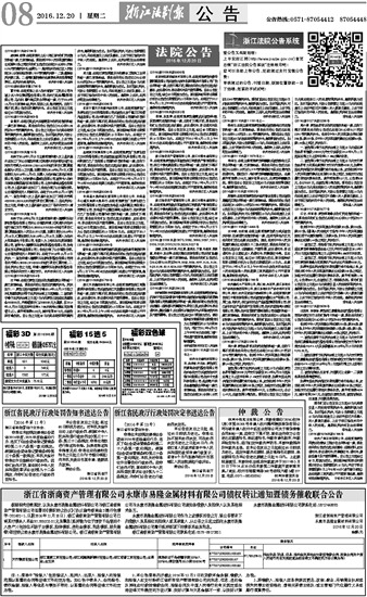 浙江省浙商资产管理有限公司永康市易隆金属材料有限公司债权转让通知暨债务催收联合公告
