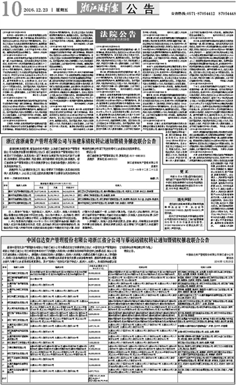 中国信达资产管理股份有限公司浙江省分公司与蔡远远债权转让通知暨债权催收联合公告