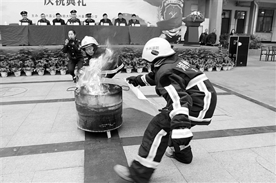 近日,长兴县消防大队在长兴第三小学举行少年消防警校成立20周年庆典。全校师生现场表演了火场逃生、油桶灭火等基础逃生自救技能。湖州市消防支队负责人告诉记者,长兴第三小学是湖州市第一所少年消防警校,成立于1997年,以“提高学生消防素质”为办学宗旨,开设军事训练、灭火救援练习、部队光荣传统教育、基本防火知识等课程,多措并举构建具有消防特色的校园文化。