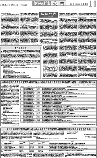 浙江省浙商资产管理有限公司与杭州坤盛资产管理有限公司债权转让通知暨债务催收联合公告