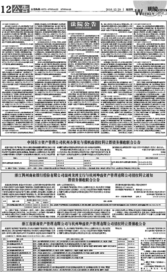中国东方资产管理公司杭州办事处与张帆盛债权转让暨债务催收联合公告