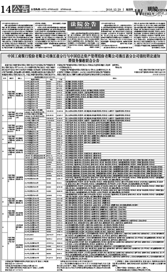 中国工商银行股份有限公司浙江省分行与中国信达资产管理股份有限公司浙江省分公司债权转让通知 暨债务催收联合公告