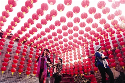 1月2日,游客在广西南宁市青瓦房古村落里游玩。